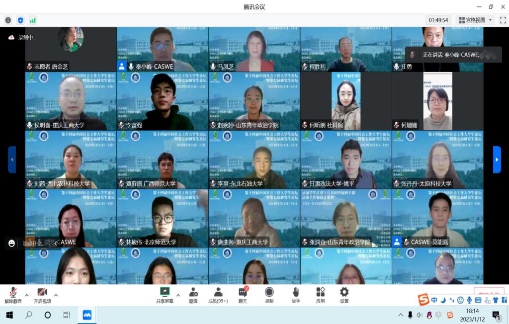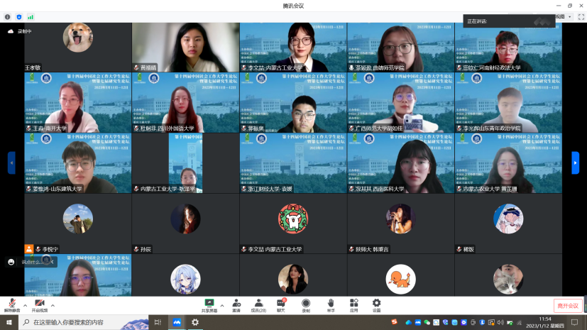 12日上午八点半至下午四点半,九个分论坛同步线上进行,284名同学围绕着第三次分配及共同富裕与社会工作、乡村振兴与社会工作实践、社会工作数字化转型、乡镇(街道)社会工作站建设与研究、新媒体与社会工作服务模式等具有时代鲜明特征的研究主题进行汇报,包括我校社会工作系多位教师在内的34名专家对同学们的汇报进行点评,各个分论坛尽然有序,同学们在论坛中收获颇丰,专家们也看到了中国社会工作的新兴力量。