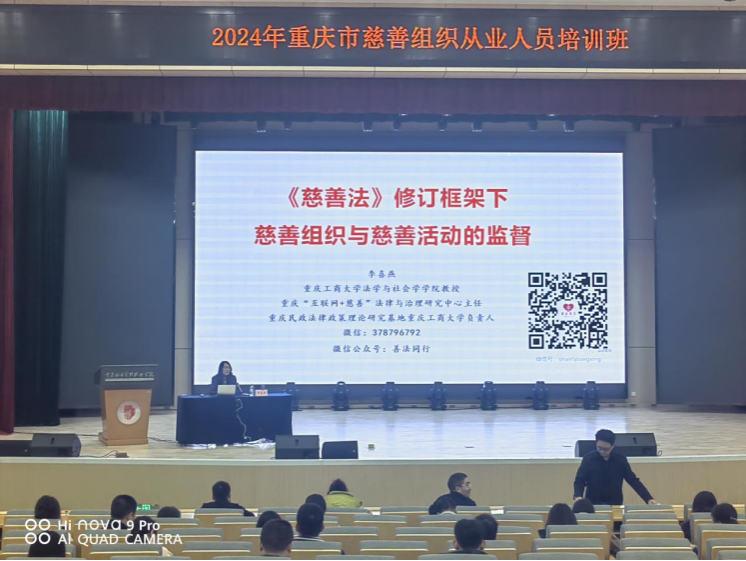 2024年11月13日上午,重庆“互联网+慈善”法律与治理研究中心主任、重庆廉政与审计治理研究中心研究员、太阳成tyc234cc李喜燕教授以“《慈善法》修订框架下慈善组织与慈善活动的的监督”为题进行讲座,讲座在重庆市城市管理职业学院学术报告厅进行,来自重庆市民政系统和慈善组织130余家共计180余人参加了培训。
