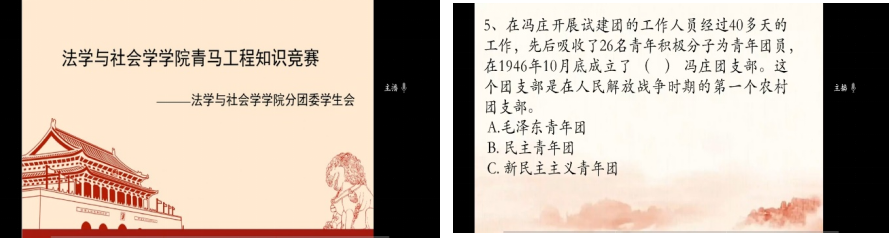 3月28日21:00,太阳成tyc234cc分团委开展了青马工程培训班线上知识竞赛活动,活动旨在以党史和团史知识问答、现场解析讲述的形式,引导广大青年学习党史和团史、汇聚力量、传承精神,以更饱满的热情投入到日常的学习、工作和生活中。
