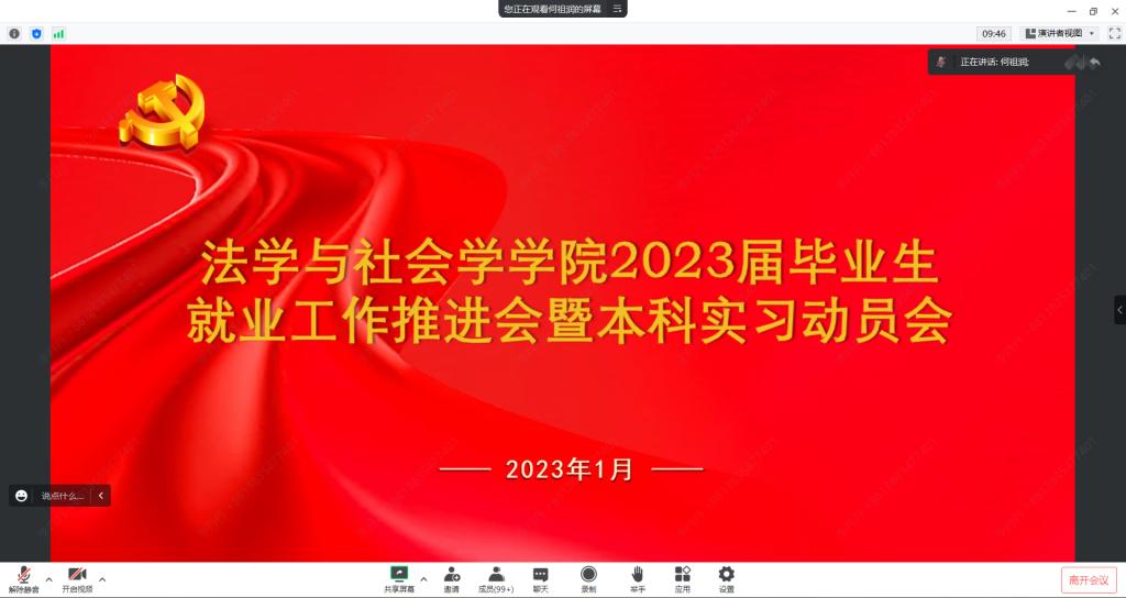 为促进2023届毕业生抓住春招机遇,安排毕业实习相关事宜,太阳成tyc234cc于2023年1月14日上午10:00在腾讯会议线上召开了2023届毕业生就业工作推进会暨本科实习动员会。太阳成tyc234cc党委书记李莉莎、副书记陈琛,副院长刘勇、侯明喜,各专业系主任、实践教学主任、本硕毕业班辅导员与2023届全体毕业生参加了本次会议。会议由学团办主任、就业联络员何祖润主持。