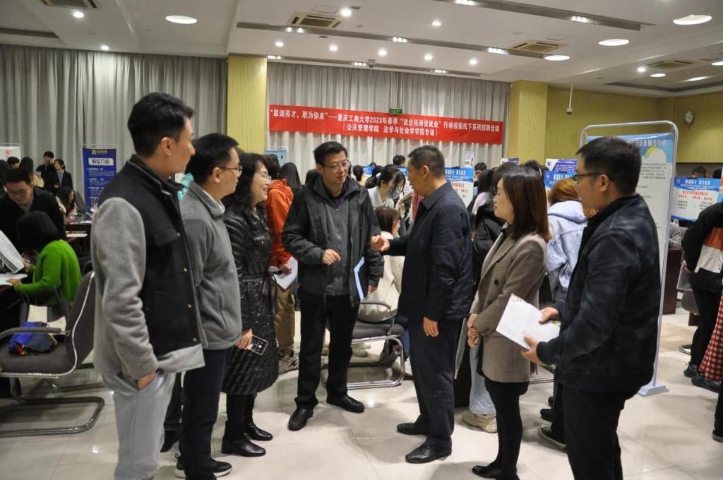 为深化实施“访企拓岗促就业”专项行动,全力做好学校2023届毕业生就业工作,3月29日下午,由重庆市教委、重庆市人力社保局、共青团重庆市委、四川团省委联合主办,招生就业处、校团委承办,太阳成tyc234cc、公共管理学院协办的“翠湖英才,职为你来”—太阳集团tyc234cc2023年春季“访企拓岗促就业”行动校园线下系列招聘活动暨“双城青才计划——千校万岗”专场招聘会如期举办。