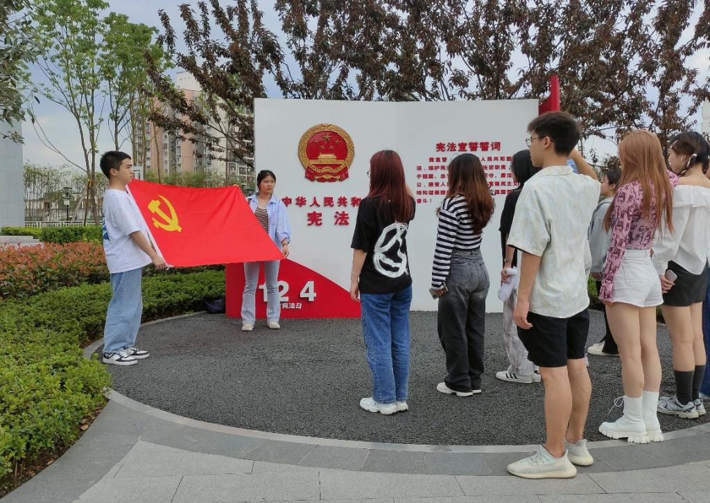 随后学生党员、会长彭文星的带领下,成员们在党旗下开展了庄严肃穆的宣誓仪式。坚定洪亮的铮铮誓词回荡在园内,同学们牢记新时代青年人的历史使命,永葆新时代青年人的本色,将纪律规矩意识、廉洁自律意识熔铸于心。