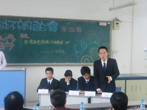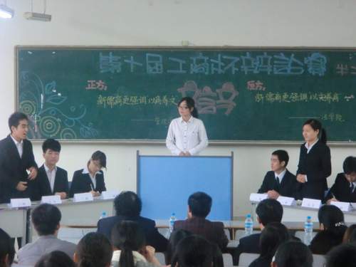 本场辩论赛的辩题为“新儒商更强调以商养文还是以文养商”。正方管理学院、反方法学院分别就“新儒商更强调以商养文”与“新儒商更强调以文养商”展开激烈探讨。辩论中,双方辩手从“新儒商”的定义入手,定焦于“以商养文”与“以文养商”中的“养”字,并引入“三聚氰胺”、“地沟油”等社会鲜活实例,探讨在新儒商文化的产生以及新儒商精神的熏陶下,新一代儒商企业家如何权衡“个人利益”与“公众利益”,如何将“儒”与“商”结合并作用于企业的经营活动中,以及企业与社会谁为儒商的宣传“买单”。