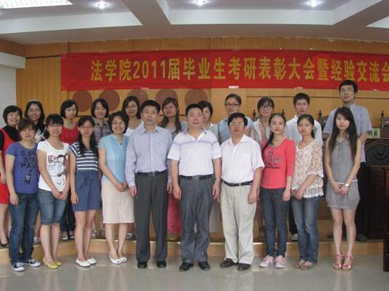 6月10日,法学院在慧智楼模拟法庭成功召开了2011届毕业生考研表彰大会暨经验交流会。法学院党总支书记杨和义、院长华鹰、副院长黄文以及毕业班辅导员林细妹出席了本次大会。此次会议由党总支副书记李莉莎主持。
