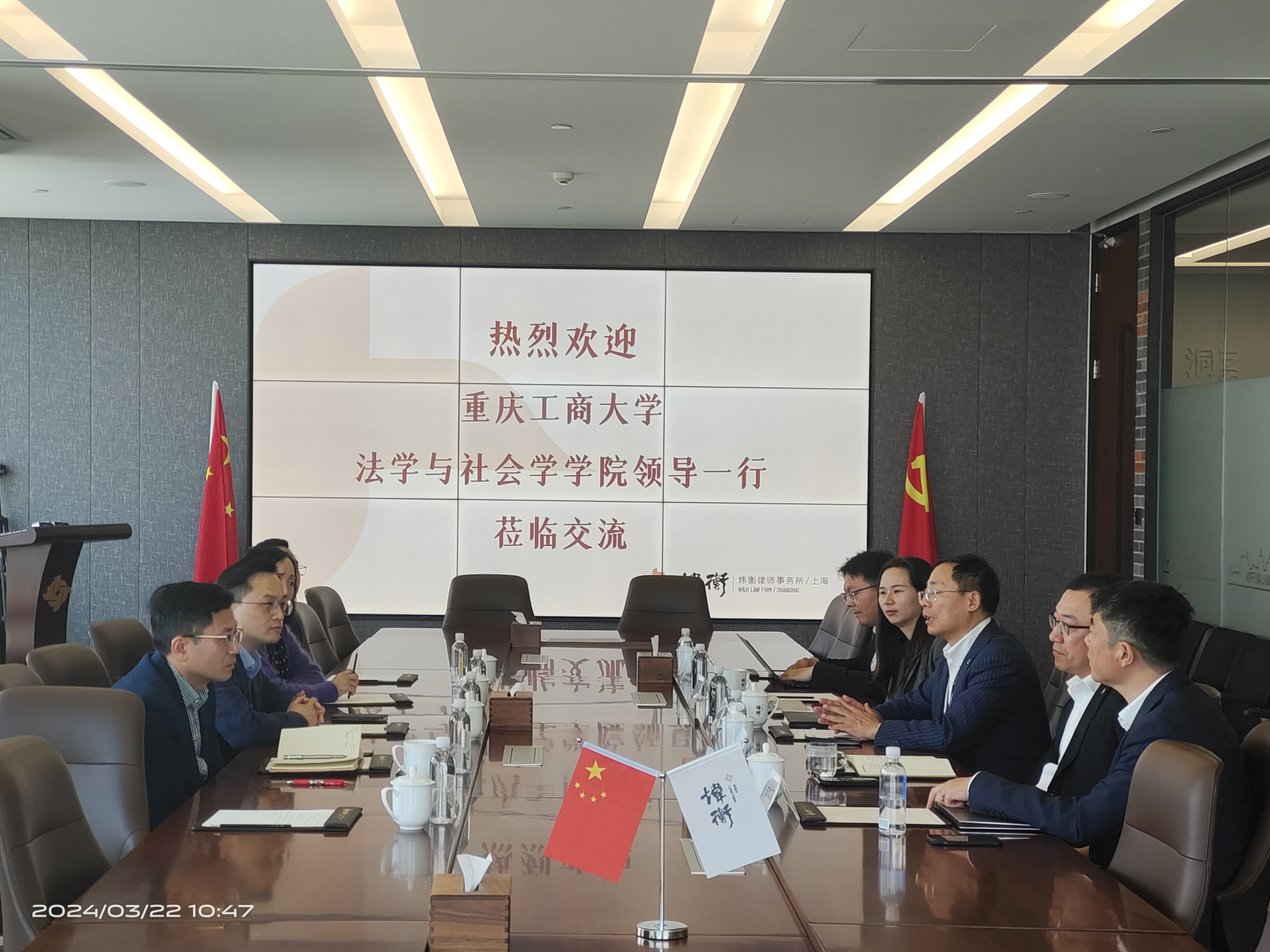 为深入了解法律行业最新行情和形势及对法学类专业毕业生的用人需求,推动毕业生实现高质量就业。2024年3月22日,学院赴炜衡(上海)律师事务所开展了“访企拓岗”专项行动。学院副院长刘勇带领专任教师李滨、程鹏立、向往及行政老师代表参加了本次专项行动。炜衡(上海)律师事务所执委会主任、高级合伙人马永健律师,执委会委员、高级合伙人金代文律师、周一鸣律师,高级合伙人陈果律师,合伙人陈冠来律师出席了座谈会。