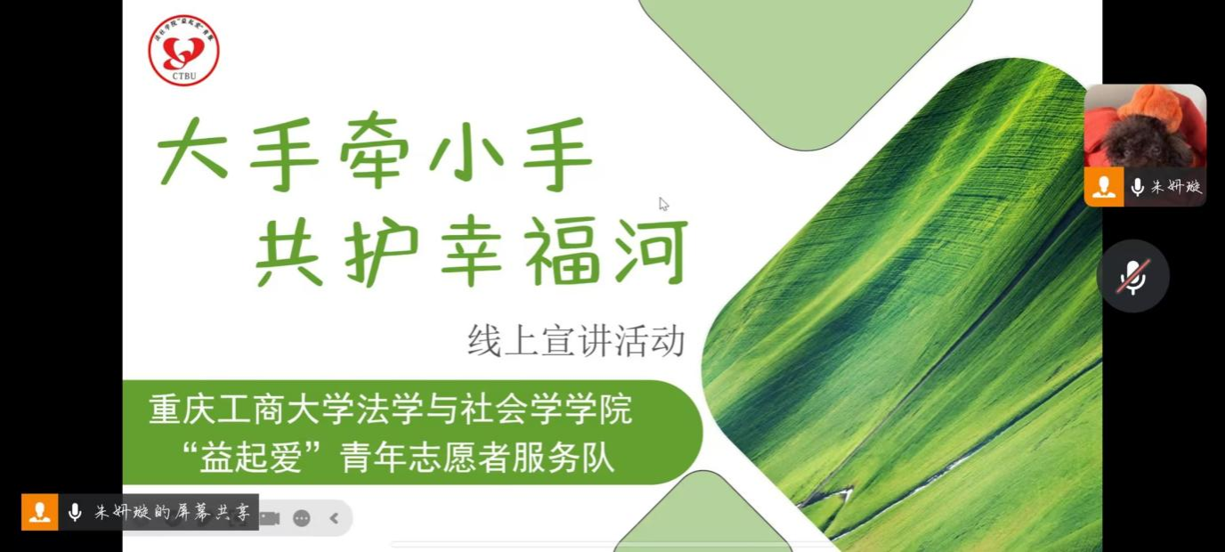 太阳成tyc234cc“益起爱”青年志愿者服务队于2024年4月7日开展“共护幸福河”线上宣讲活动,由志愿者朱妍璇担任主讲人。