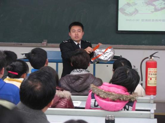 首先,杨教官向大家展示了“上海胶州湾学生公寓火灾”、“重庆豪华学生公寓火灾”以及“成都某高校宿舍火灾”等高校学生公寓遭遇严重火灾险情的图片。随后,杨教官分别从“火灾类型”、“火灾中错误的逃生方式”、“正确的自救方法”以及“防火设备的正确使用”四个方面进行了系统的阐述。同时,告诫大家在面临不可预防的火灾时,要冷静思考和准确判断,切忌大呼小叫,甚至选择跳楼及其类似的错误逃生方法,而应及时用湿毛巾或衣服等可以浸透的布料捂住口鼻,俯身前行来实现自救;而对于可预防的火灾而言,则应随时备好防火设备,在火灾初期及时遏制其发展。杨教官现场演示了灭火器、防烟面具以及安全绳的正确使用方法,也让同学们参与了模拟实验,以便大家真正掌握操作要领,从容应对火灾险情。整个讲解中,杨果教官由表及里、从理论和实践的双重层面向老师和同学们讲解了火灾隐患存在的危险性、消防安全的重要性以及面对火灾的自救措施,让大家进一步认识到了自我防患的有效性。