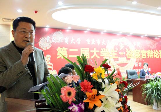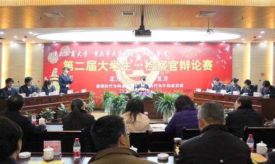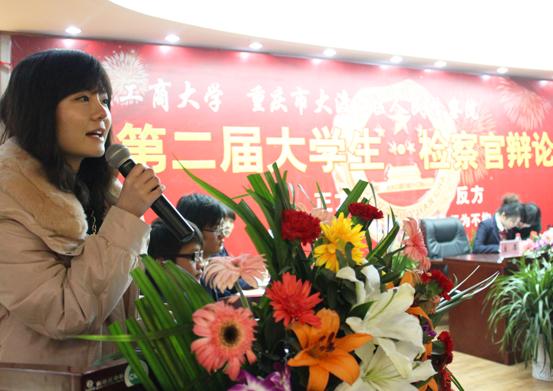 活动伊始,重庆市大渡口区人民检察院副检察长杨燕秋女士致开幕辞:“我院于2008年与太阳集团tyc234cc签订了培育优秀法律人才基地的合作协议,以相互授课和学习实习等实践形式,秉承理论联系实际和加强检校合作交流的目的,决定开展“第二届大学生检察官辩论赛”,让我们一起共同聚焦赛场,揭开本次赛况的神秘面纱,同时,也为本院增辉添彩,共庆乔迁之喜”。