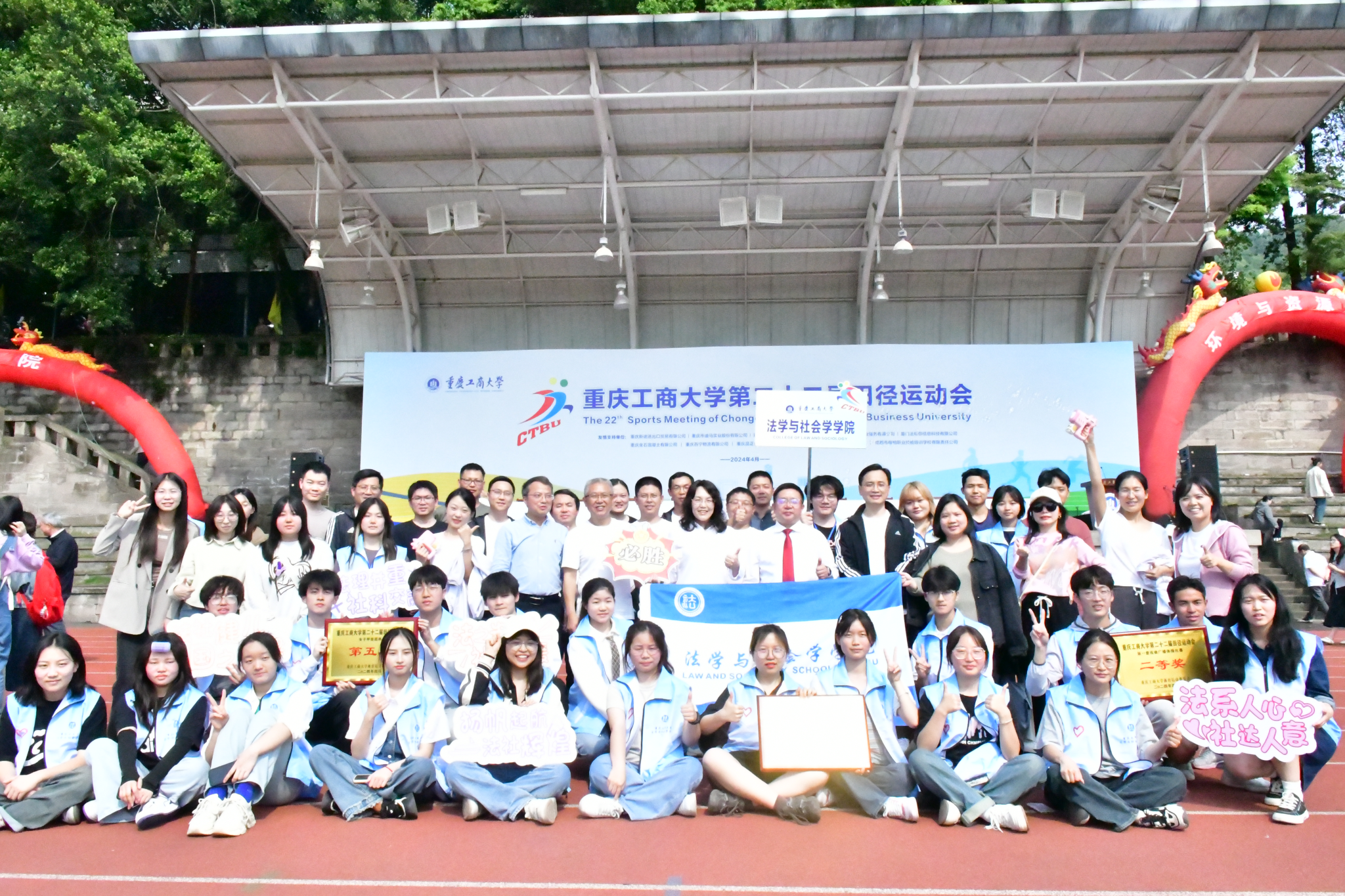 运动员们在个人项目中的奋勇拼搏、集体项目中的团结友爱,观众席上啦啦队员们的加油鼓劲,都彰显着法社学院积极向上、温暖前行的院风形象。最终,在本次运动会中我院师生斩获戏曲广播体操比赛二等奖、女子甲组团体第五名、教职工体育道德风尚奖。
