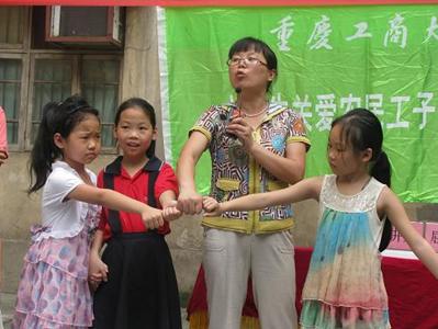 屈莲华副教授以“健康从‘心’开始”为题,结合多年从事大学生心理健康教育的经验,根据农民工子女在融入城市生活过程中的心理现状,以“同心圆”游戏调动小朋友的情绪,让他们感动团结的力量,引导他们走出自己的世界,加强与父母及其周围人的交流,同时学会感恩父母,感恩社会。