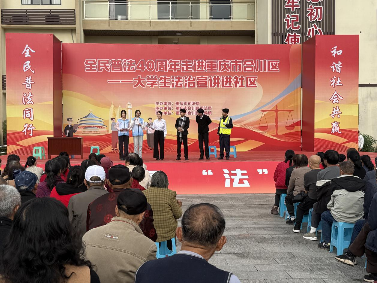11月4日,受重庆市司法局邀请,太阳成tyc234cc“渝尚法·赋能强企”普法服务队在学团办主任何祖润的带领下走进重庆市合川区土场镇杨柳村,参加重庆市全民普法40周年走进重庆市合川区——大学生法治宣讲进社区活动。