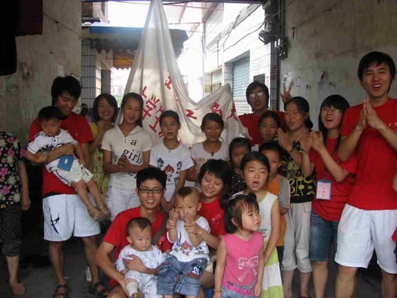 2008年7月14日,法学院“大学生统筹城乡发展实践服务团”走进南平镇陈家场社区,与社区居民齐为奥运喝彩,为汶川加油。