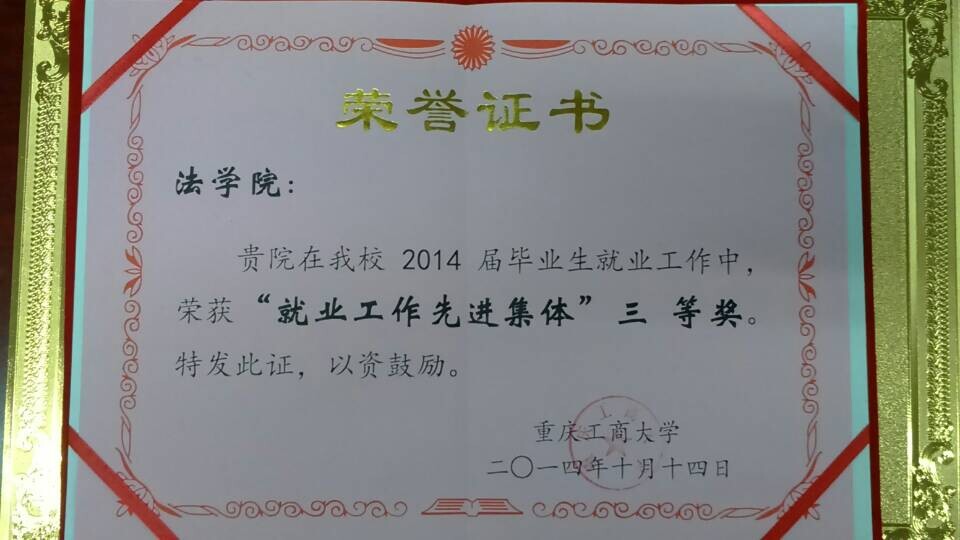 祝贺法学院荣获“就业工作先进集体”三等奖