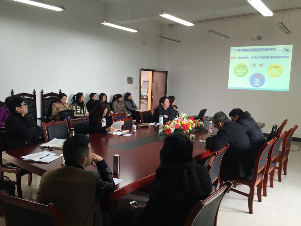 首先,法学院党总支书记李自维教授向全体教职工传达了《太阳集团tyc234cc2016年党政工作要点》,明确了2016年学校、学院工作重点与方向。之后,李自维书记带领全院教职工共同学习了《高水平大学建设与审核评估》与《重庆的发展及供给侧改革》两个专题报告。