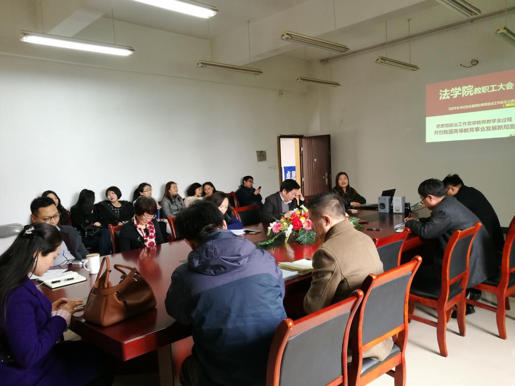 通过本次学习与讨论,法学院全体教职工进一步统一和加深了对高校思想政治工作重要性的认识,使大家明确了自己在高校思想政治工作中的职责与担当,并将“习近平总书记在全国高校思想政治工作会议上讲话精神”切实贯彻落实到学院实际人才培养工作中。