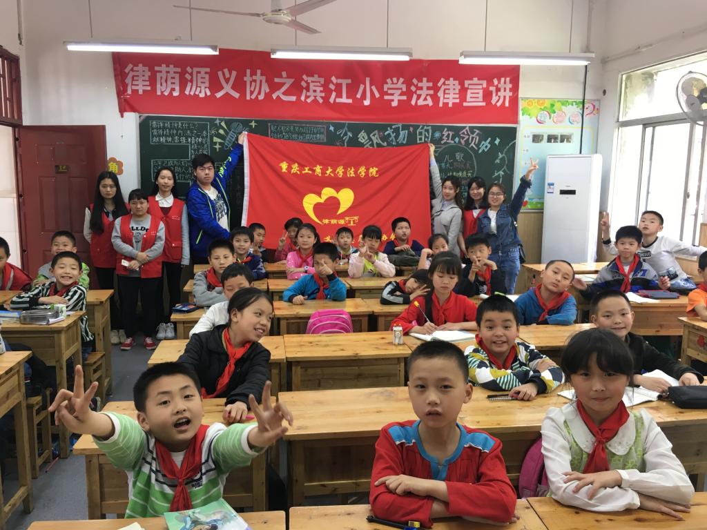 目前,我国正在积极建设法制社会,而青少年正处于人生成长发展和价值观念形成的关键时期,在这一时期开展有针对性的法制宣传教育,增强他们的法制观念,培养他们的法治意识,更有助于促进青少年的健康成长,对预防青少年违法犯罪以及推动社会主义法制建设具有重要意义。为此,太阳集团tyc234cc法学院“律荫源”义工志愿者协会于2017年4月28日下午在滨江小学开展了法律宣讲活动。此次活动共有二十四名志愿者参加。