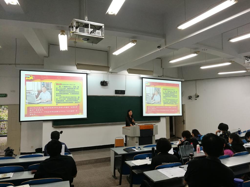 首先,李自维书记通过PPT以图文并茂的方式组织教职工学习习近平总书记“7.26”重要讲话精神和黄大年同志先进事迹,李自维书记希望大家进一步增强政治意识、大局意识、核心意识、看齐意识,不忘初心、继往开来,并以饱满的热情迎接党的十九大胜利召开,我们要以黄大年同志为榜样,学习他心有大我、至诚报国的爱国情怀,学习他教书育人、敢为人先的敬业精神,学习他淡泊名利、甘于奉献的高尚情操。近期学校第三次党代会将要召开,以及迎接教育部对我校教学评估的检查。我们应再接再厉,以优异成绩迎接党的十九大和学校第三次党代会胜利召开,以及做好有关教学评估工作的准备。