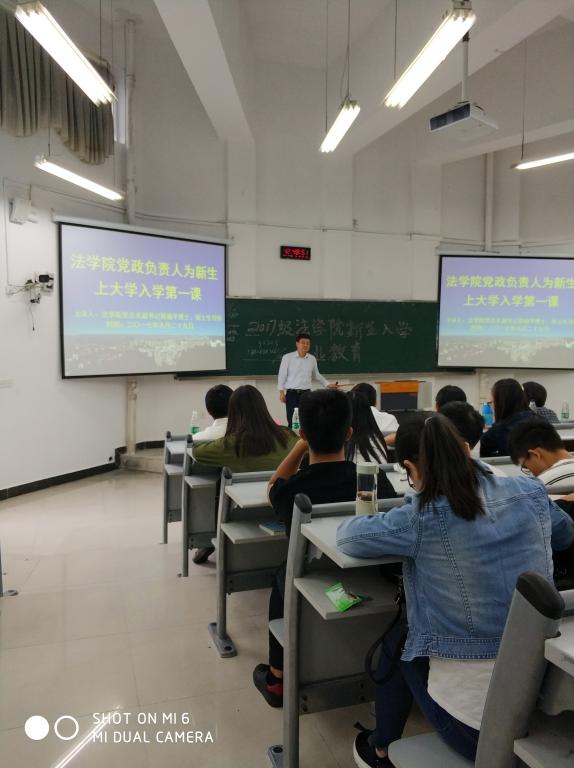 (法学系主任马迅老师为法学专业同学进行专业教育)