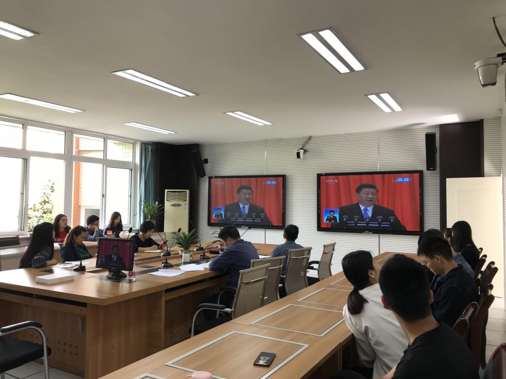 5月4日上午,纪念马克思诞辰200周年大会在北京人民大会堂隆重举行。法学院全体行政人员以及部分学生党员在学院90429会议室通过网络集中组织收看大会直播实况。