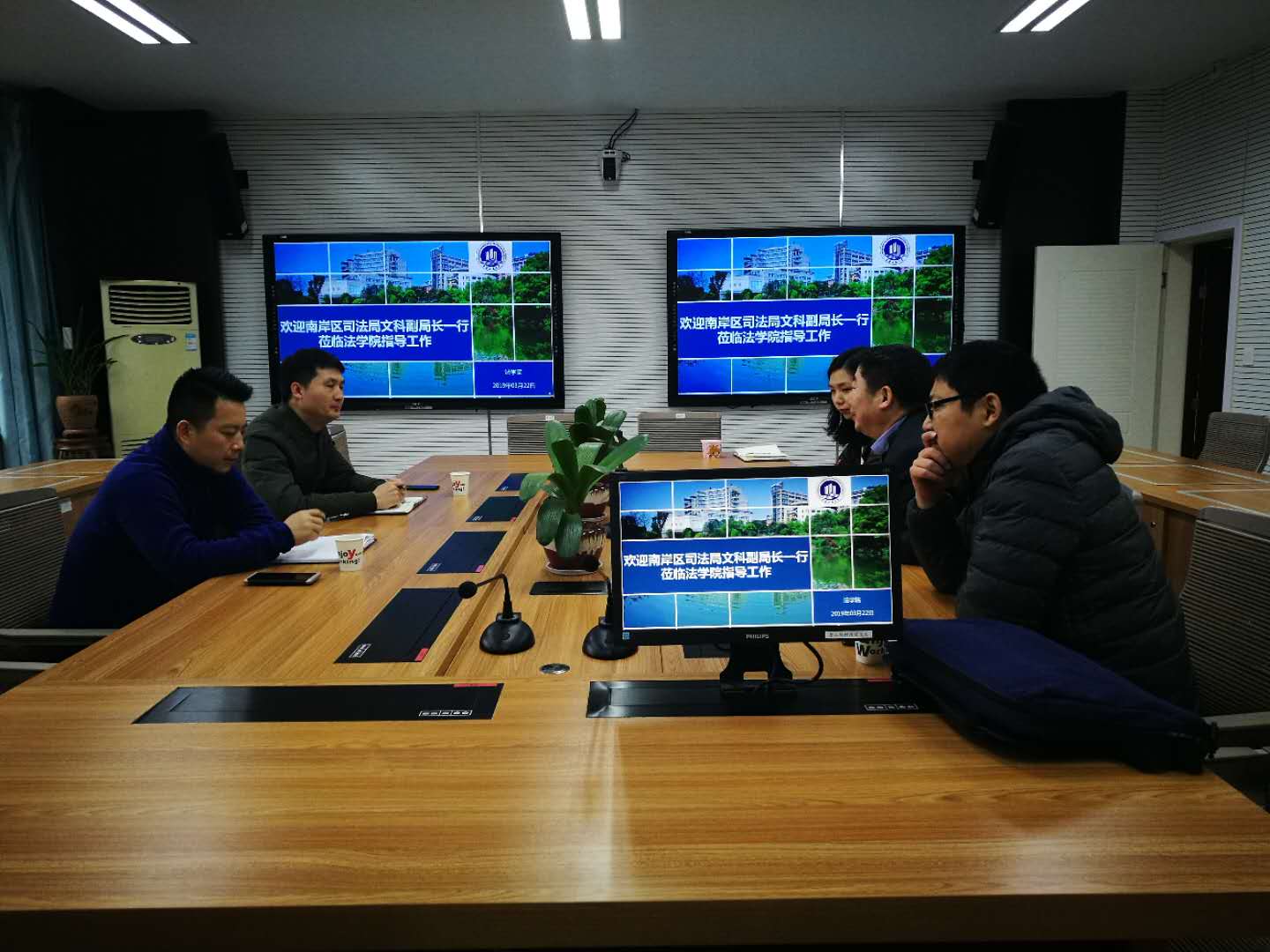 3月22日上午,重庆市南岸区司法局文科副局长一行来法学院检查指导工作。法学院院长杨和义、法学系主任马迅和知识产权系系主任张琨蓓陪同并参加座谈会。会上,杨和义院长首先对文局长一行来法学院指导工作表示欢迎,并详细介绍了法学院以及下辖的重庆廉政研究中心和知识产权运营研究中心的整体运行情况。接着,文局长介绍了南岸区司法局管辖的各个职能部门以及工作职责,南岸区司法局机构改制后,机构增多,现在的功能更强大;然后以司法局和太阳集团tyc234cc都属于重庆市南岸区为引,导出此次来法学院的目的,希望与法学院建立长期稳定的合作关系,并由此开展广泛和深度的交流,促进人员交往,实现更广领域的合作共赢。最后双方就合作的事宜互相沟通,希望近期达成书面协议。
