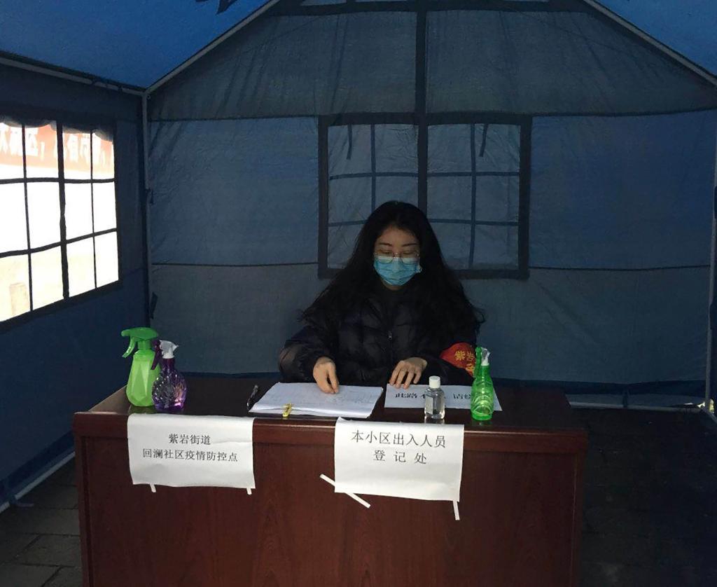 法学院2018级研究生党员谢明璇从2月7日起在辽宁省朝阳市双塔区前进社区参与疫情防控志愿者工作。