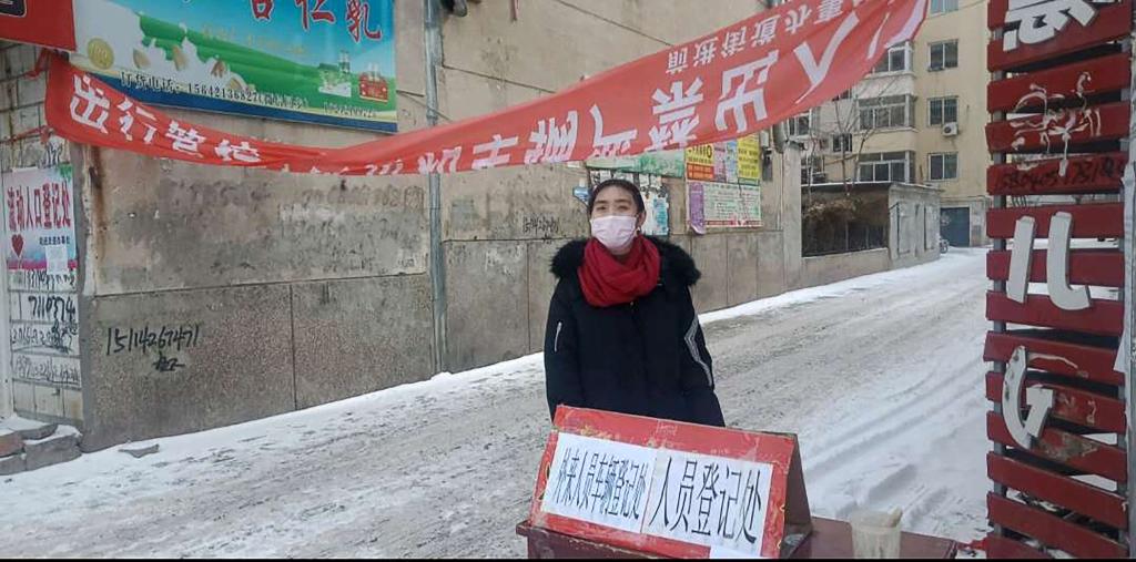 她主要负责为居民发放出入证,登记在户人员信息,对外出、外来人员进行登记、消毒、监测体温,维持全封闭管理秩序,监督所在小区人员做好防护措施。