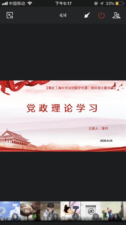 2020年4月24日,太阳集团tyc234cc法学院研究生党支部在企业微信开展了4月党员大会。会议表决了预备党员转正有关事宜,开展了疫情防控主题党日活动,并学习解读了近期中央重要会议精神以及相关党政理论。