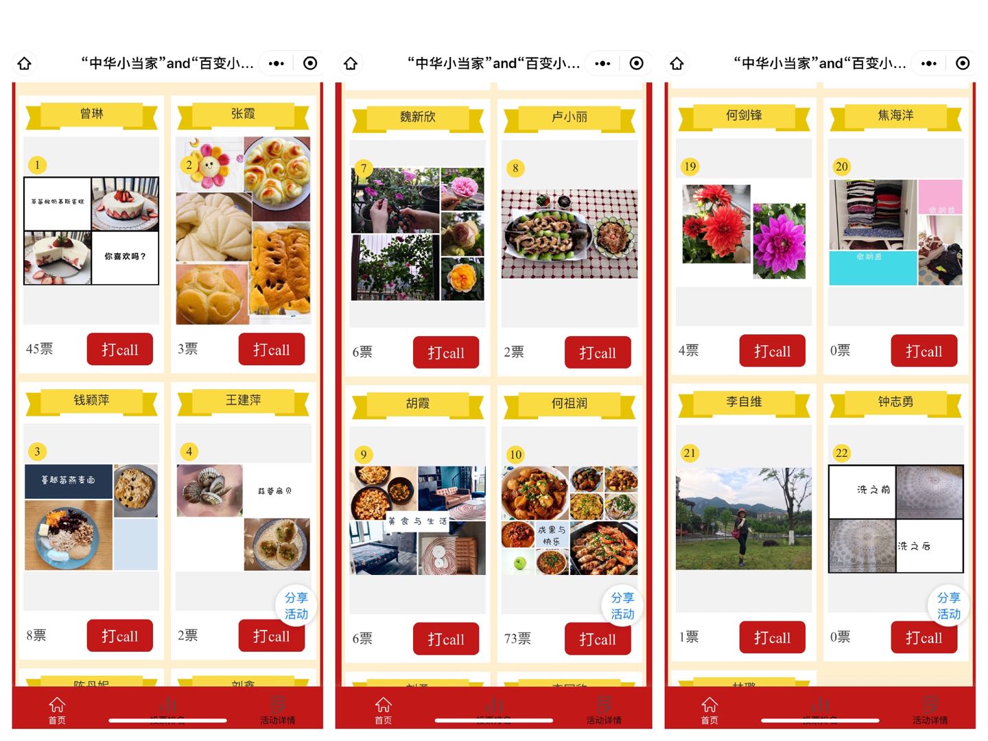 教师赛区中,法学院党总支书记李自维率先以田间地头的劳动照带领大家积极参赛,院长杨和义展示了五一劳动节期间居家收纳的劳动成果,副院长刘勇、党总支副书记林璐向学院师生分享了宅家烹调作品;工会主席钱颖萍老师、曾琳老师、彭霞老师、刘波老师以自制的蛋糕和面包等烘培作品参赛;张霞老师、公杰老师、陈丹妮老师展示了自己制作的馒头、饺子、包子等家庭面点,胡霞老师、焦海洋老师、钟志勇老师分享了宅家清洗、收纳、整理的劳动成果,何剑锋老师、李国豹老师、李泱泱老师用自己精心种植和修剪的花草参与比拼。