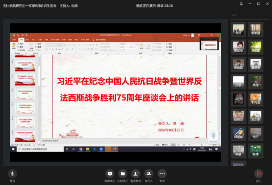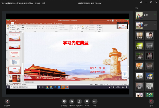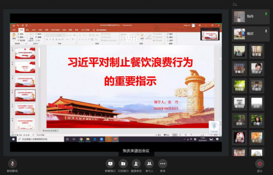 学习过程中,领学者带领全体党员同志重点对研究生教育工作、思政课建设、制止餐饮浪费、成渝地区双城经济圈建设、学习先进典型等内容及精神进行学习,引发大家的思考与讨论。其中,张丹同志谈到,党员同志要以身作则,响应制止餐饮浪费的号召,带头强化“节约光荣、浪费可耻”思想认识,在厉行节约、反对浪费,特别是餐饮浪费上走在前、作表率。刘颖同志则提到了此次新冠肺炎疫情中,为疫情防控作出重大贡献的先进典型们,党员同志应当学习“人民英雄”精神,在任何阶段都能够不忘初心,牢记使命。