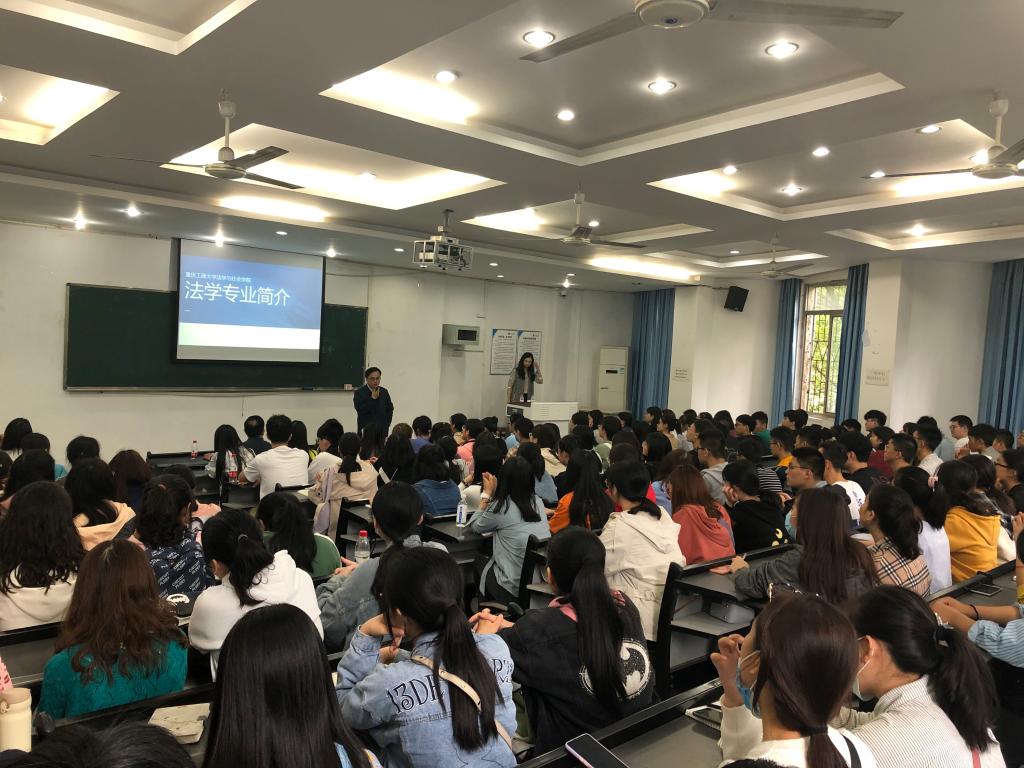 学院院长黄文首先对同学们考入太阳集团tyc234cc法社学院表示祝贺和欢迎!他从学院历史发展、师资力量、专业建设、学科发展、科学研究等方面给同学们做了详细介绍,并对同学们提出了五点希望:做好自己的人生规划;勤奋努力、不负青春、不负韶华;勤学好问,坚持不懈;正面面对挫折和失败;心忧天下,有家国情怀。林璐副书记从学院学生发展、学风建设、学团特色活动等方面进行了介绍,并向同学们提出了学业规划建议:孜孜不倦,做勤学着;志存高远,做追梦者;积极实践,做知行合一者。学团办副主任何祖润介绍了学生手册使用、综合测评结构及指标、新生团组织关系转移等事宜,鼓励学生积极入党,参加社团,绽放青春活力。副院长侯明喜殷切希望同学们在新时代大发展的“时间轴”和“地域轴”中找准自我定位,坚定理想信念,志存高远。