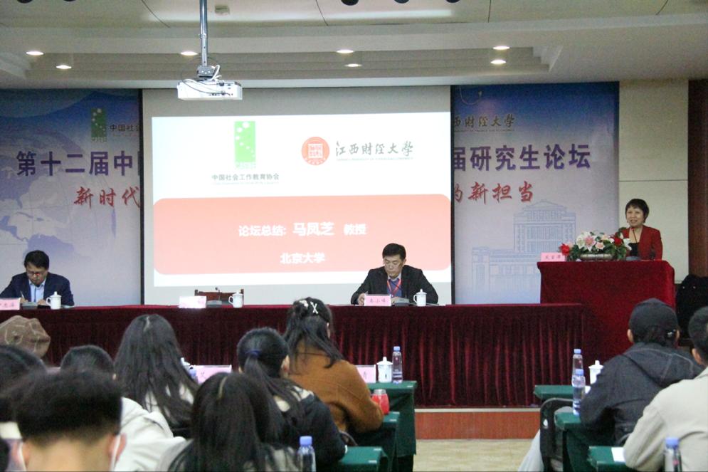 2020年11月28-29日,“第十二届中国社会工作大学生论坛暨第五届社会工作研究生论坛”在江西财经大学举行。本次论坛由中国社会工作教育协会主办,江西财经大学承办。全国社会工作专业学位研究生教育指导委员会副主任委员、中国社会工作教育协会副会长兼秘书长马凤芝教授,中国社会工作教育协会秦小峰主任,江西财经大学人文学院院长尹忠海教授主持,来自全国60多所大学的社会学及社会工作的本科生、研究生和博士生参加。