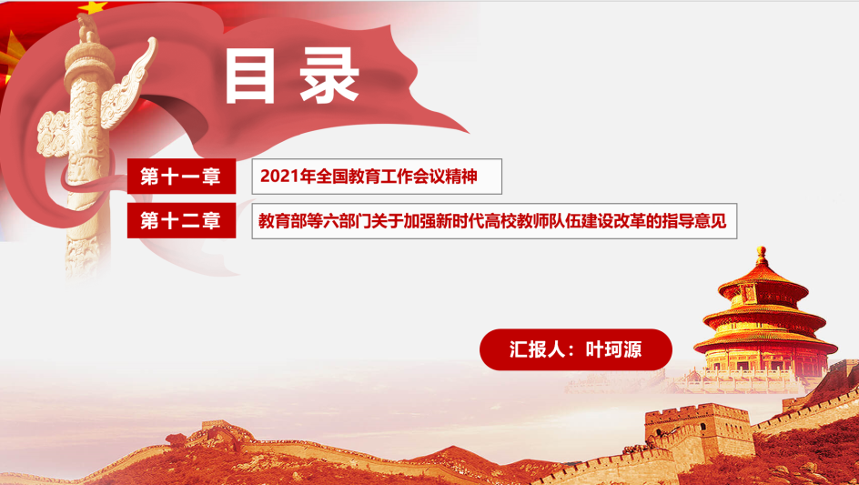接着,叶珂源同志带领大家对“2021年全国教育工作会议精神” “教育部等六部门关于加强新时代高校教师队伍建设改革的指导意见”进行了学习,并谈到,2021年是关键的一年,每个党员同志都要做出自己的努力,为建设教育强国开好局、起好步做出贡献,以优异成绩庆祝建党100周年。