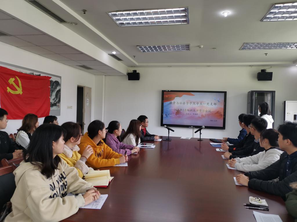 会议第二项议程,由刘龙庆同志主持开展三月组织生活会。法学与社会学学生一支部坚持贯彻落实新时代党的组织路线,致力于不断把党支部建设得更加坚强有力,把学习贯彻习近平新时代中国特色社会主义思想作为首要政治任务,跟进学习习近平总书记最新讲话精神,持续学习十九届五中全会精神,学习《习近平谈治国理政》第三卷,开展党史学习教育,学习新中国史、改革开放史、社会主义发展史,不断提高政治判断力、政治领悟力、政治执行力。在刘龙庆同志的带领下,大家一起学习了习近平在全国脱贫攻坚总结表彰大会上的讲话,习近平同志《论中国共产党历史》《关于认真学习贯彻习近平总书记在党史学习教育动员大会上的重要讲话的通知》《习近平新时代中国特色社会主义思想学习问答》,全国两会精神要求,重庆市国家保密局的倡议书,市委常委会关于抓好中央巡视反馈意见整改的会议精神等内容。