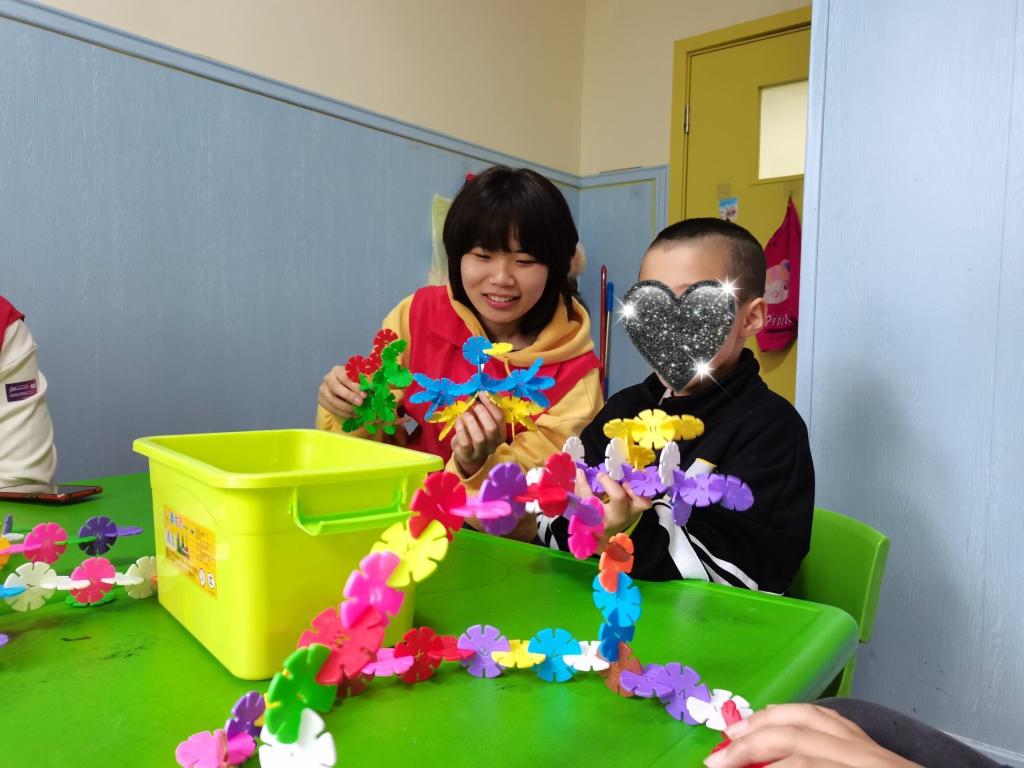 活动中,志愿者们分成两队分别去给大班和小班的孩子们上课,让孩子们和我们一起学习画画、涂色,一起拼积木。每一位孩子都学习得很认真,志愿者们适时地帮助和鼓励,都激励着每一位小朋友,大大增强了他们的自信心。他们还和小朋友们一起看了熊出没,孩子们都被电影吸引住了,天真无邪的笑脸浮现在孩子们稚嫩的脸庞。通过这些活动,让孩子们在学习中感受到乐趣,丰富孩子们的精神生活。