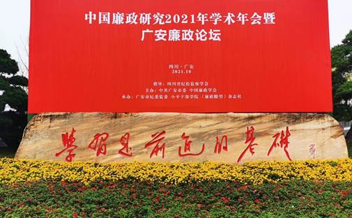 中国廉政研究2021年学术年会暨广安论坛于10月23日在四川广安举行,我院重庆廉政研究中心副主任胡霞,研究员李鹏飞受邀参会。本届年会由四川省纪检监察学会指导,中共广安市委、中国管理现代化研究会廉政建设与治理研究专业委员会主办,广安市纪委监委、小平干部学院、《廉政瞭望》杂志社协办,年会以“建设廉洁中国·护航民族复兴”为主题,旨在共同探寻推进廉政治理体系和治理能力现代化建设的方法路径。