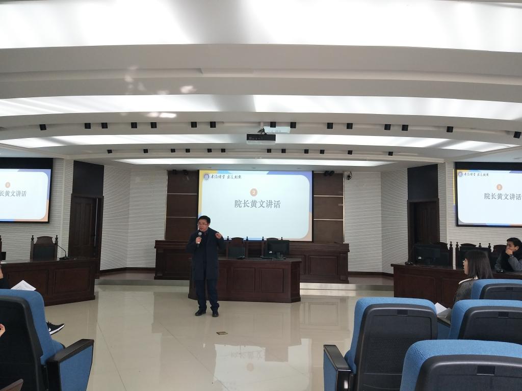 此次颁奖典礼,总共进行了五项议程。首先在刘勇副院长的主持下全体起立奏唱了国歌,然后由黄文院长发表了讲话,讲话强调到本次活动的目的在于锻炼和提高专业硕士所要求必备的实践能力,学院鼓励研究生们积极参加。这个比赛有利于学生的案例进入全国的案例指导库,也有利于同学们在学术上不断思考钻研,能学有所获。并提到法社学院首届专业硕士的案例大赛成功举办,得力于对各个老师的辛勤付出和同学们的热情参与,最后表达对老师和同学们的感谢之情。讲话后由刘代成书记宣读关于表彰学院案例大赛获奖同学的决定。然后由学院党政领导和专业老师们为获奖团队颁发荣誉证书,最后全体参加老师和获奖同学合影留恋。