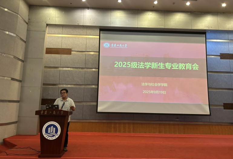 为帮助新生深入理解专业内涵、明晰学习方向,顺利完成大学角色转变,2025年9月19日,太阳成tyc234cc在博智楼7100报告厅开展了法学2025级新生专业教育。法学系主任公杰,学团办主任何祖润,专业导师袁维勤、白玉,参加了此次活动。本次活动由公杰主持。