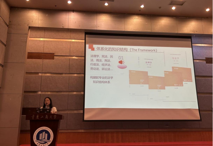 何祖润代表法学系全体教师向2025级新生的到来表示热烈欢迎。她系统宣讲了学校团务知识,同时表达了对新生专业学习与未来成长的殷切期待。随后,白玉围绕“法学专业的核心能力”“法学专业的就业方向”等话题展开分享,并结合自身丰富的学科经验为学生们答疑解惑。紧接着,袁维勤以“检索工具”为切入点,向新生详细推荐了法律条文以及专业文献查找的多个网址,进一步激发新生对专业学习的热情。最后,公杰详细介绍了法学专业目前发展状况以及未来展望,有效增强了新生的专业认同感与学习自信心。