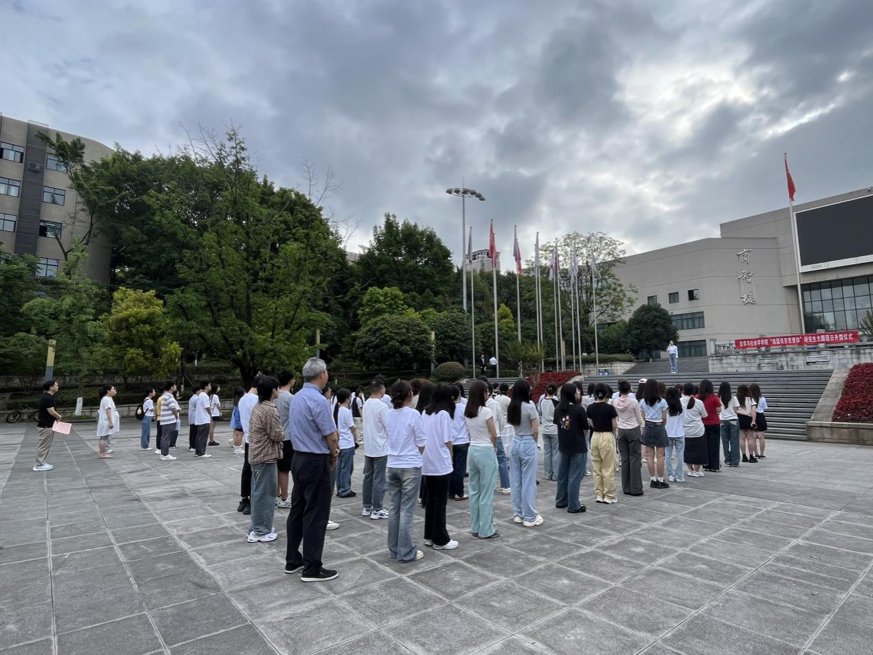 最后,李国军为全体研究生加油打气,勉励同学们以更加饱满的热情、更加坚定的信念、更加扎实的行动,共同谱写爱国主义的壮丽篇章。全体师生齐聚国旗下留下了珍贵的合影。