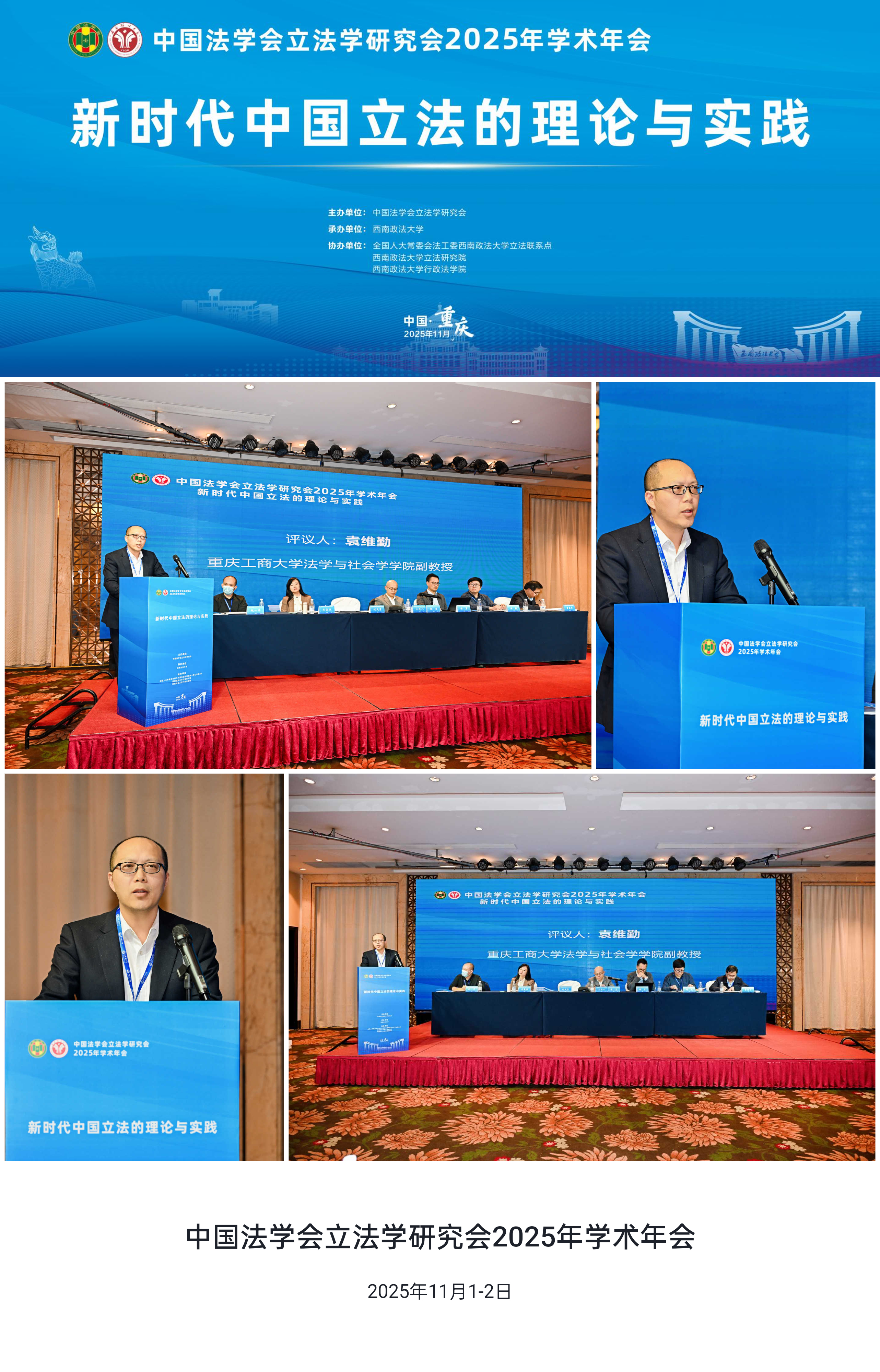 2025年11月1日上午,中国法学会立法学研究会2025年学术年会在重庆市召开。本次会议以“新时代中国立法的理论与实践”为主题,由中国法学会立法学研究会主办,西南政法大学承办,来自全国各地的400余位立法学研究者与立法实务工作者参会。