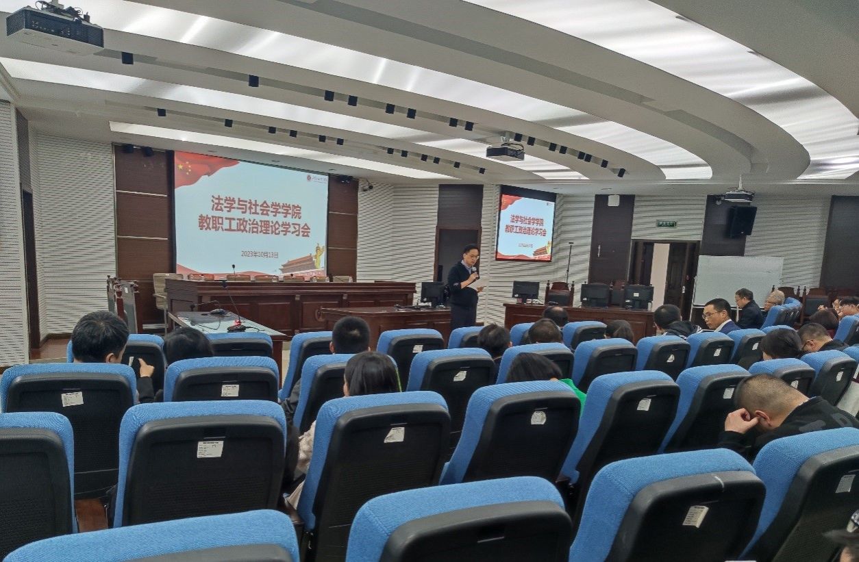 10月13日,太阳成tyc234cc在慧智楼90426会议室召开了全体教职工大会暨10月政治理论学习会。会议由学院党委书记李莉莎主持,学院全体教职工参加了本次会议。