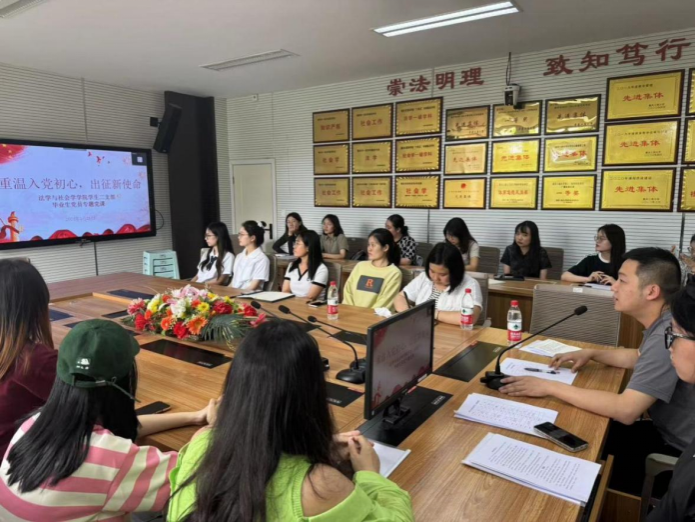 为了进一步加深对毕业生党员的党性教育,深入学习党的理论,2024年5月21日,太阳成tyc234cc学生二支部支部书记刘桥阳在慧智楼90429会议室为该支部毕业生党员讲了一堂题为“重温入党初心,出征新使命”的党课。