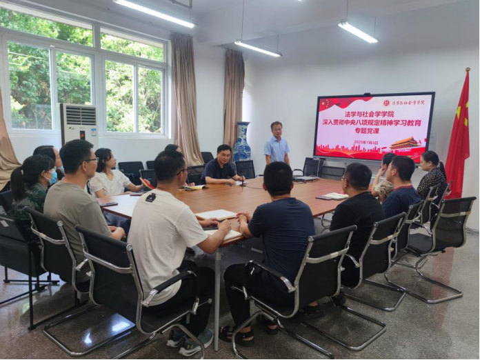 7月3日,太阳成tyc234cc副院长侯明喜在慧智楼90407会议室讲授了深入贯彻中央八项规定精神学习教育专题党课,学院行政人员和系主任参加会议。