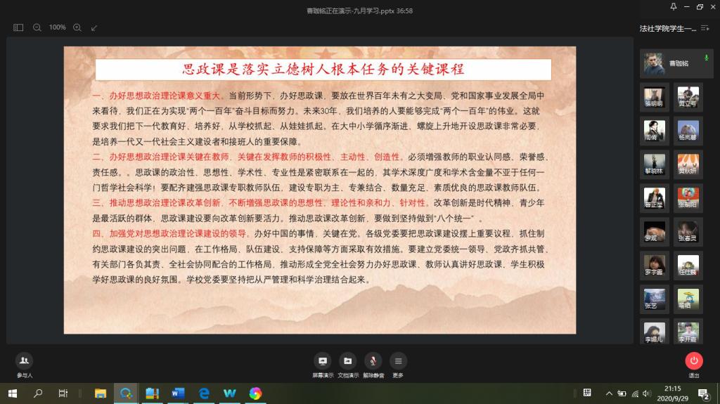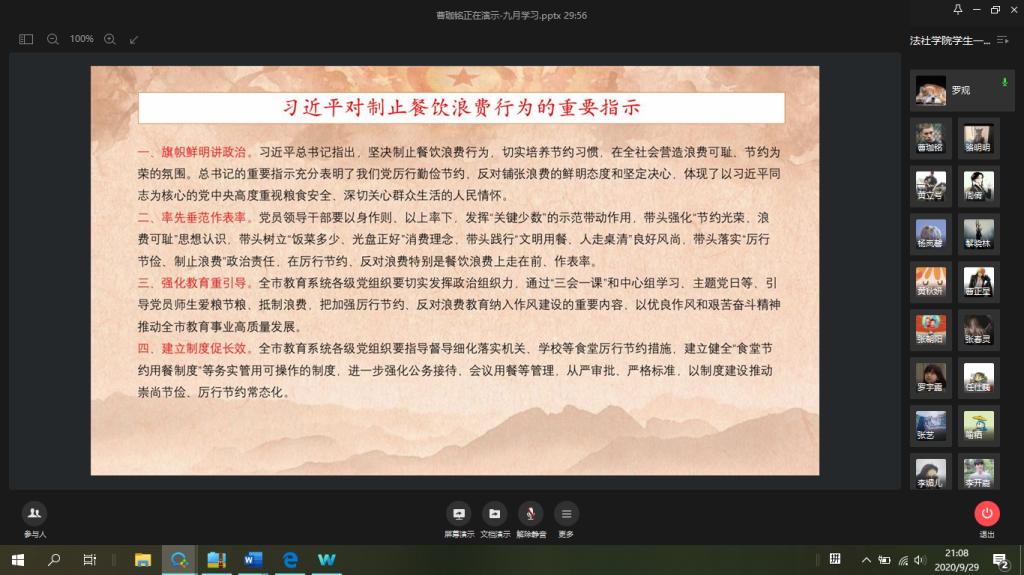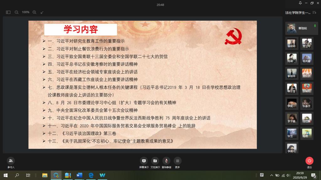 2020年9月29日,太阳成tyc234cc学生一支部在企业微信平台上开展了学习交流会。在罗观同志的指导之下,圆满完成了九月党组织学习交流活动。