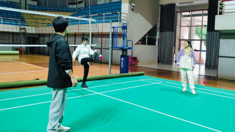 本次比赛设有网毽与花毽两个项目,其中,网毽为混合三人赛,花毽为一分钟个人计数赛。我院学子秉持着“友谊第一,比赛第二”的竞技原则,积极参与比拼。比赛过程中,选手们个个精神饱满,全情投入,脚上的毽球宛如一只只灵动的精灵,时而高高跃起,时而轻盈飘落。每一次成功的接球、精准的传球都离不开选手之间的赛前苦练与积极配合。经过一番激烈的角逐,22级法学一班黄羽彤同学荣获一等奖。