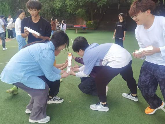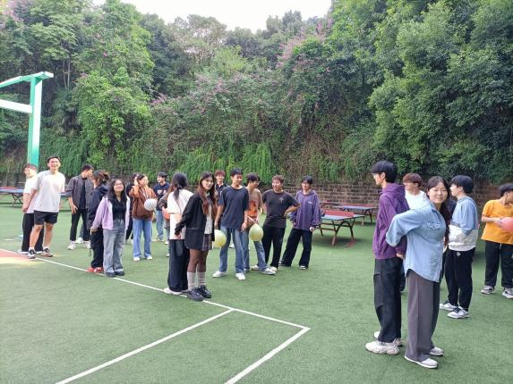 活动现场热闹非凡,来自全校各个学院专业的协会会员们个个精神抖擞,跃跃欲试。此次素质拓展活动内容丰富多样,设计巧妙地融合了趣味性与竞技性。其中,运气球项目备受瞩目。需要相邻两名队员背对背将气球运到终点,这考验着他们之间的默契程度。在比赛过程中,有的组合心有灵犀,动作整齐划一,顺利完成挑战;有的组合虽状况百出,但他们相互鼓励,不放弃的精神赢得了阵阵掌声。“创意乒乓球接力”也吸引了众多目光。各个小组需要使用独特的道具传递乒乓球,比如用勺子、书本等。这一项目激发了社员们的想象力和创造力,大家在欢笑中完成接力,也深刻体会到了创新在团队活动中的重要性。此外,还有“高手挑战赛”,社团中的精英选手们展开了激烈角逐。精彩的扣杀、巧妙的旋球、敏捷的扑救,每一个精彩瞬间都让观众们热血沸腾,欢呼声、叫好声此起彼伏。