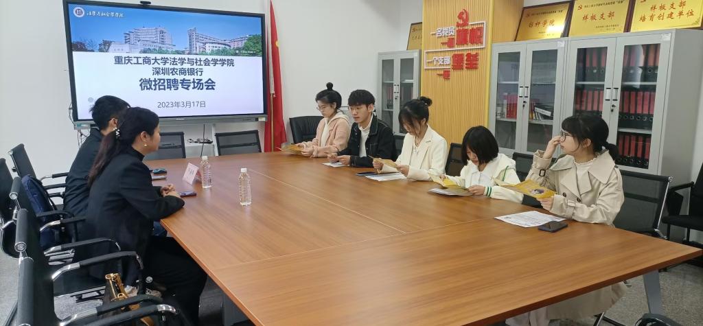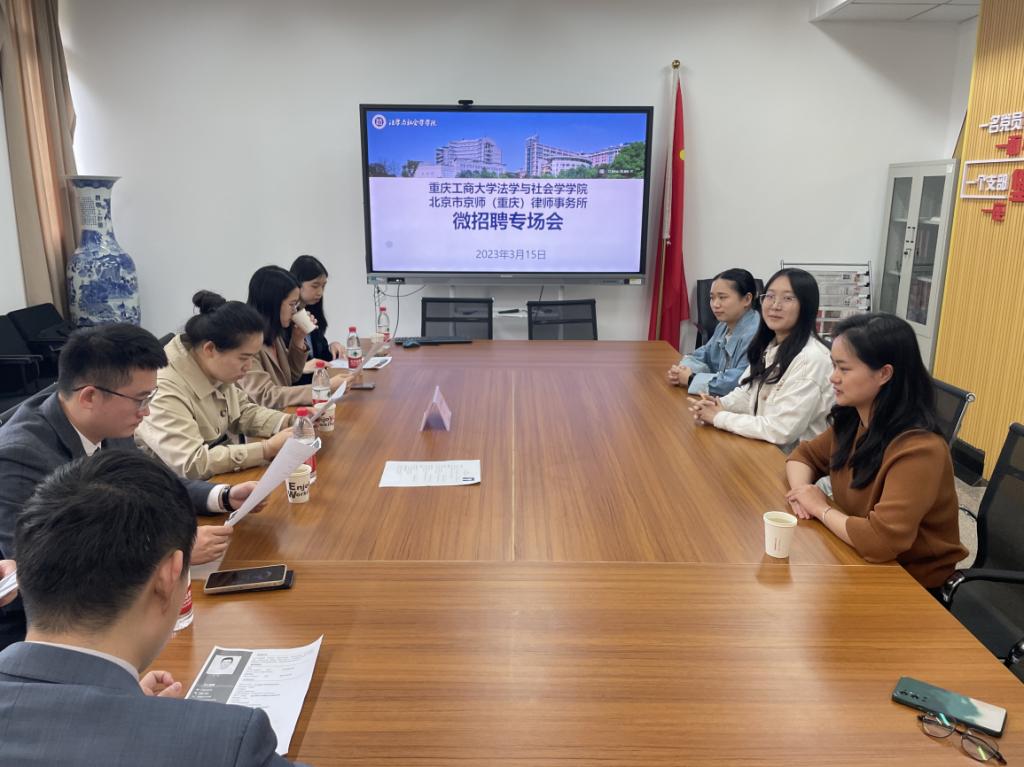 3月15日下午,学院邀请就业与实践合作单位北京京师(重庆)律师事务所杨雯钧、林进华等6名律师在90407会议室举办微专场招聘会,部分法学、知识产权专业本硕毕业生到场参会。律师们向毕业生介绍了律所的发展历程、业务范围及用人标准,双方就发展前景、职业选择等方面展开深入交流。