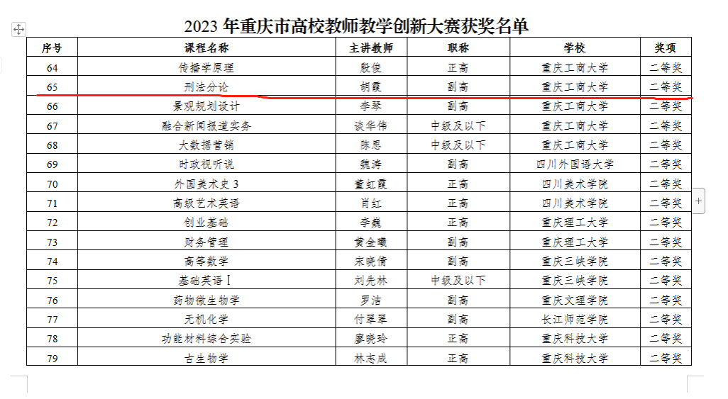 近日,2023年重庆市高校教师教学创新大赛获奖名单公布,我院选送的法学系胡霞副教授凭借精彩的教学设计、扎实的教学功底和优秀的综合素质,荣获重庆市高校教师教学创新大赛二等奖!特此祝贺!