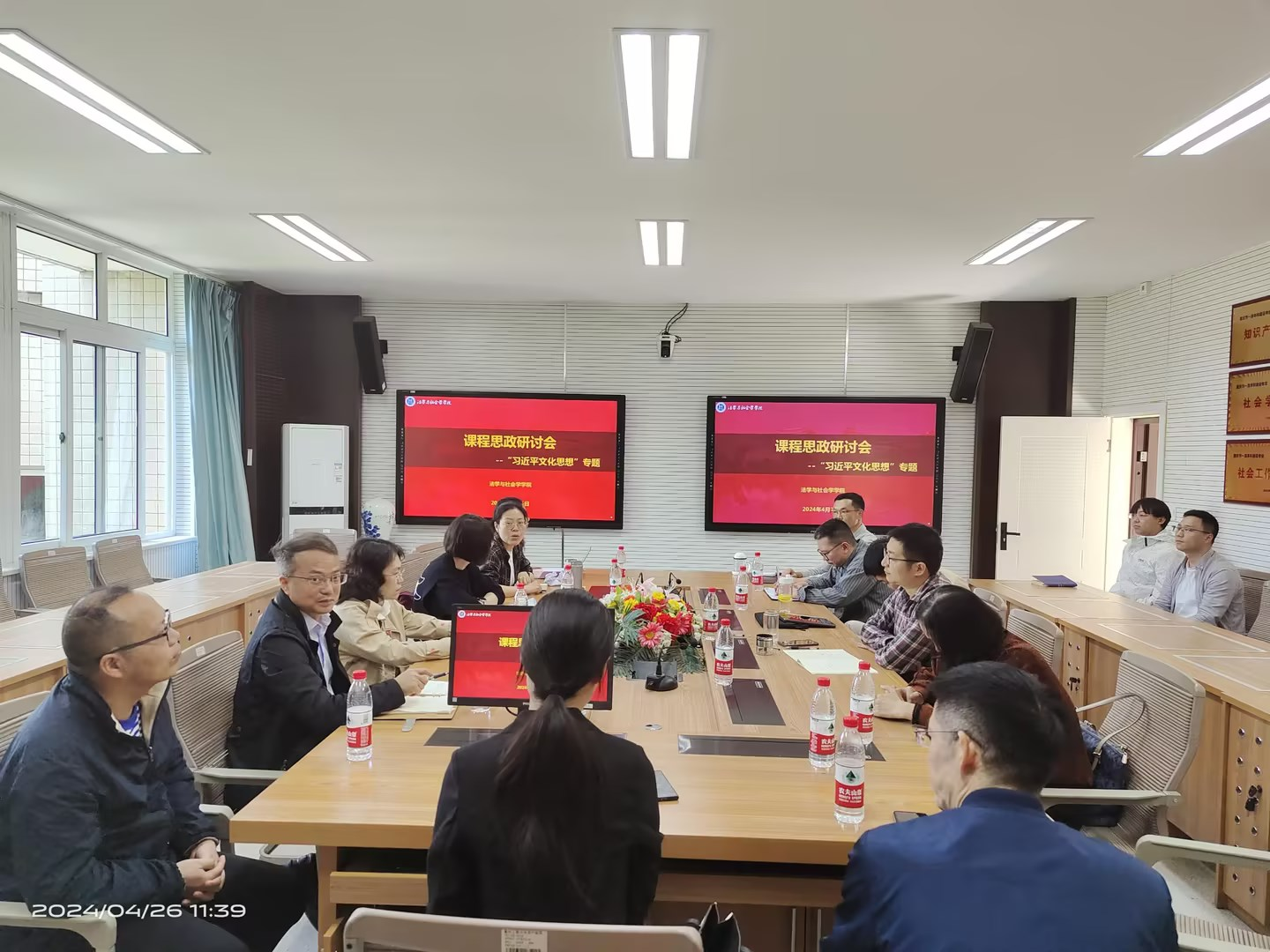 4月26日,学院在90429会议室召开学习贯彻“习近平文化思想”课程思政专题研讨会。会上,任课教师围绕如何将“习近平文化思想”融入课程思政展开讨论。党委书记李莉莎、骨干教师代表、近五年新入职青年教师参加了此次研讨会。研讨会由教学副院长侯明喜主持。