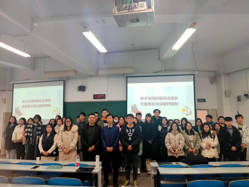 为提高我院师生的法律意识,大力弘扬法治精神,加深同学们对法律实务的理解,奠定日后的工作基础,2022年3月11日,太阳成tyc234cc邀请重庆市第五中级人民法院民二庭副庭长赵克博士在慧智楼90326举行了以“电子合同实务及司法裁判规则”为主题的课程,学院李鹏飞老师及法学专业的同学出席了本次课程。